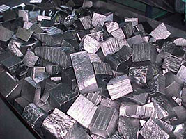 The following can be used as initial charge: titanium sponge of different fractions, pelletized titanium sponge, as well as titanium scrap and prepared chips.