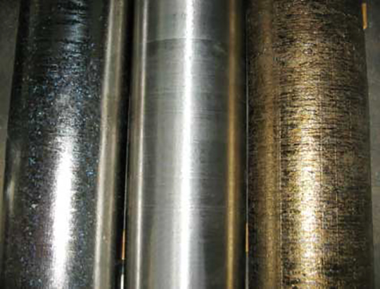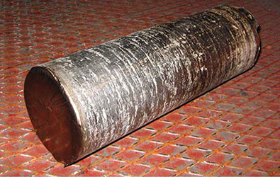 Appearance of titanium alloy ingots: a — with glazed surface; b — with machined surface; c — cast ingot
