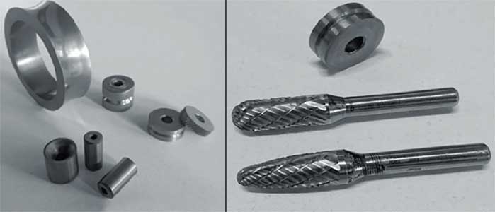 металургійні напрямні ролики та окалиноотбивачі для прокатних станів дроту (матеріал WC–Co);